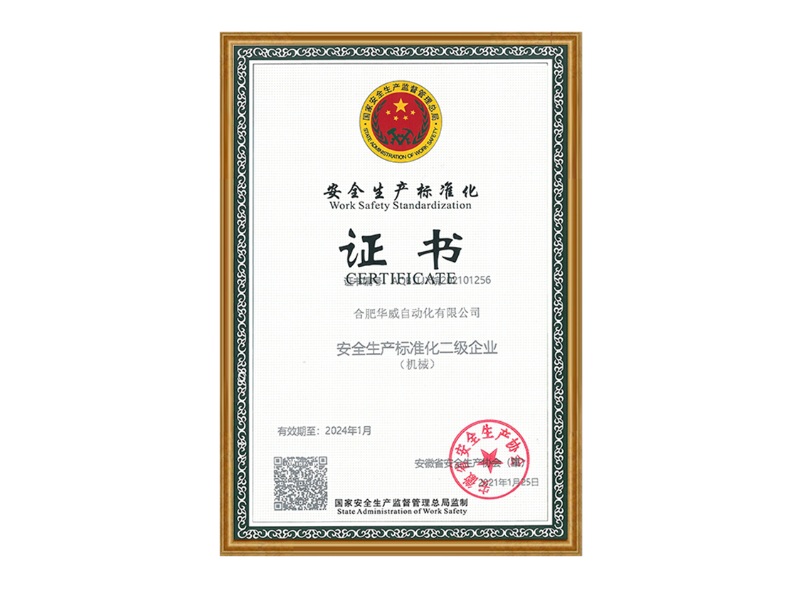 安全生產(chǎn)標(biāo)準(zhǔn)化二級企業(yè)