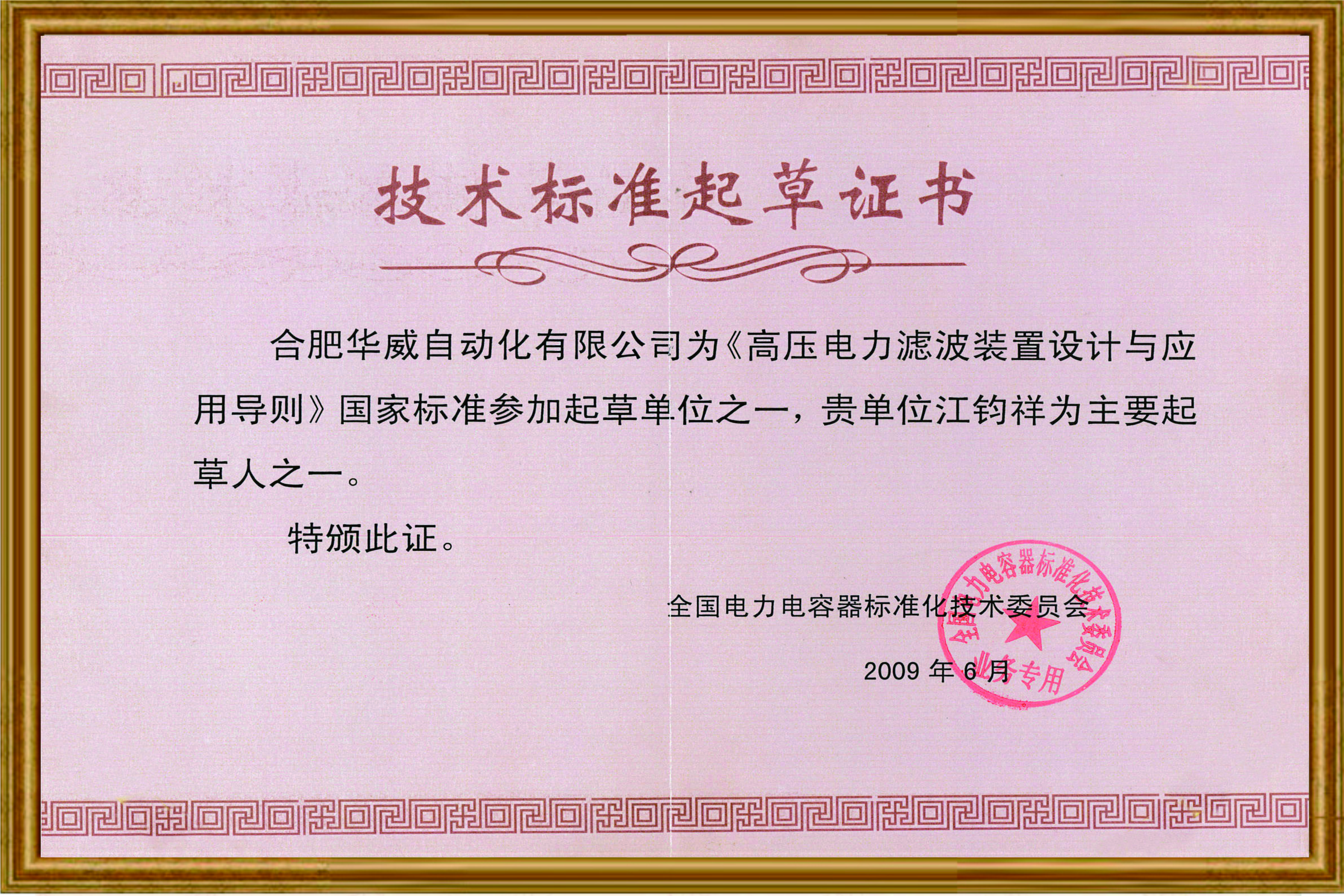 技術(shù)標(biāo)準(zhǔn)起草證書