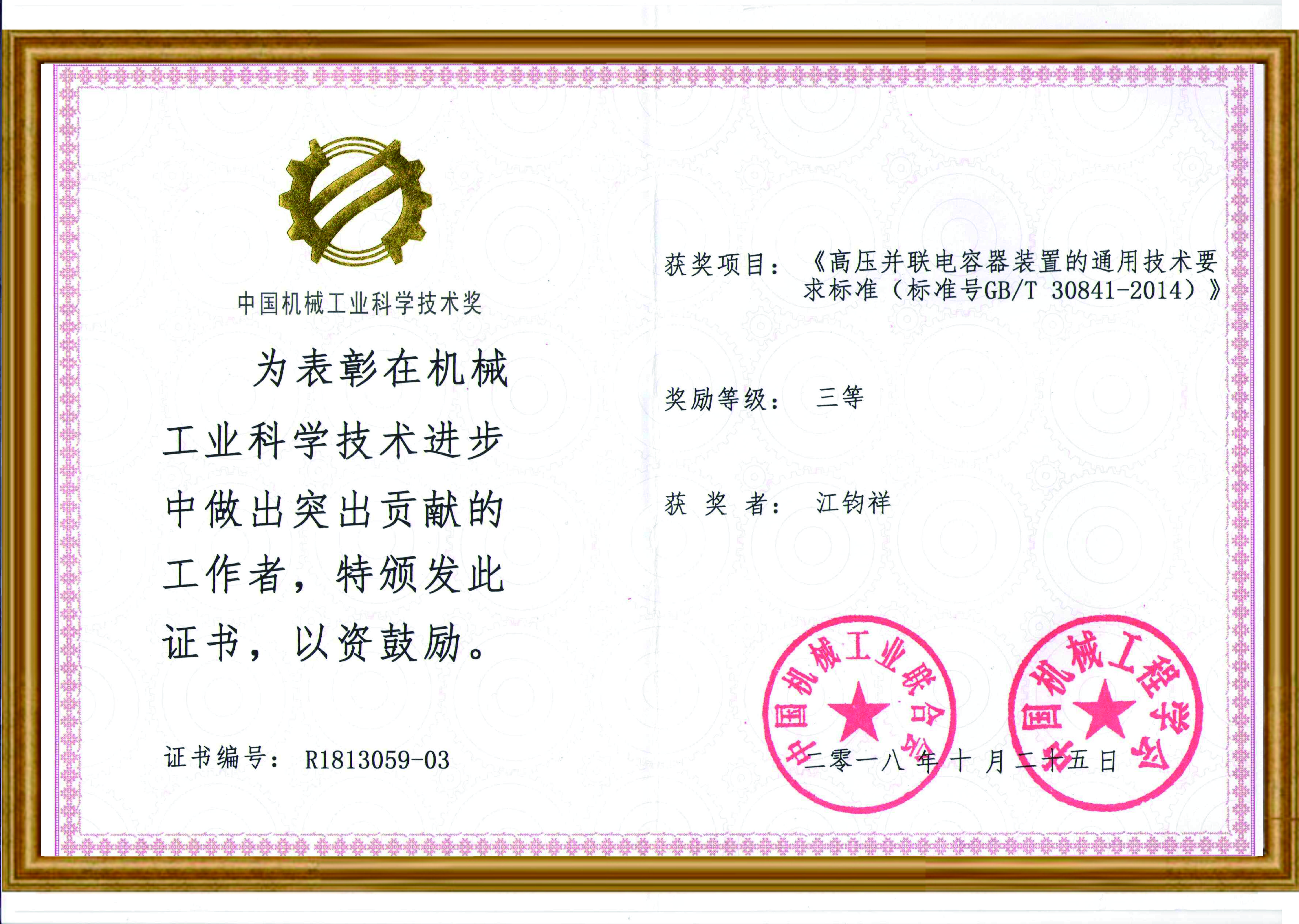 中國機(jī)械工業(yè)科學(xué)技術(shù)獎